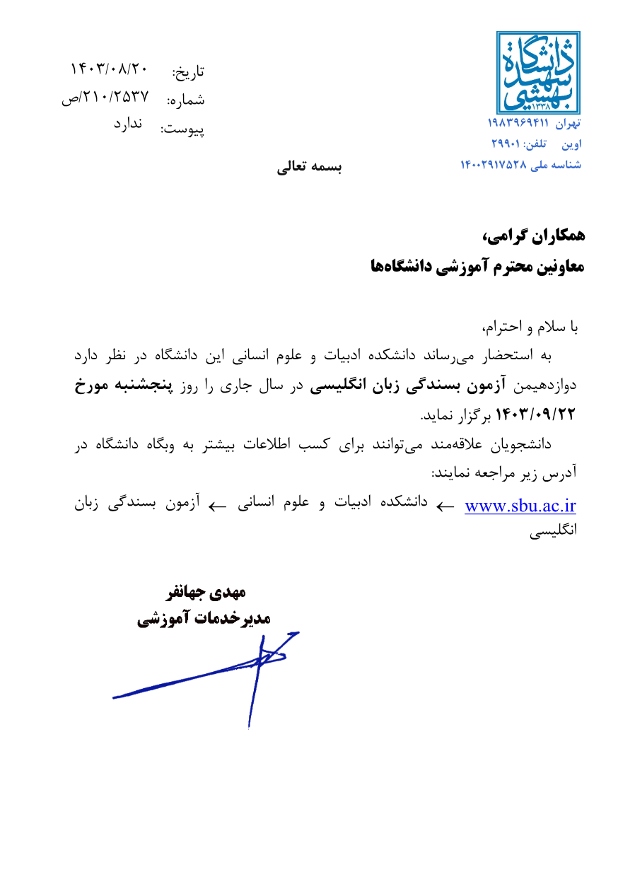 دوازدهمین آزمون بسندگی زبان انگلیسی - دانشگاه مازندران