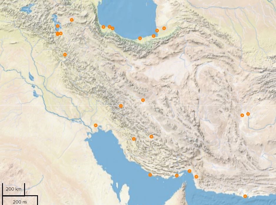 شکل2. پراکندگی و موقعیت تالابهای بینالمللی ایران(منبع: وبسایت کنوانسیون رامسر)